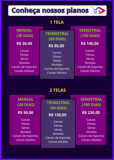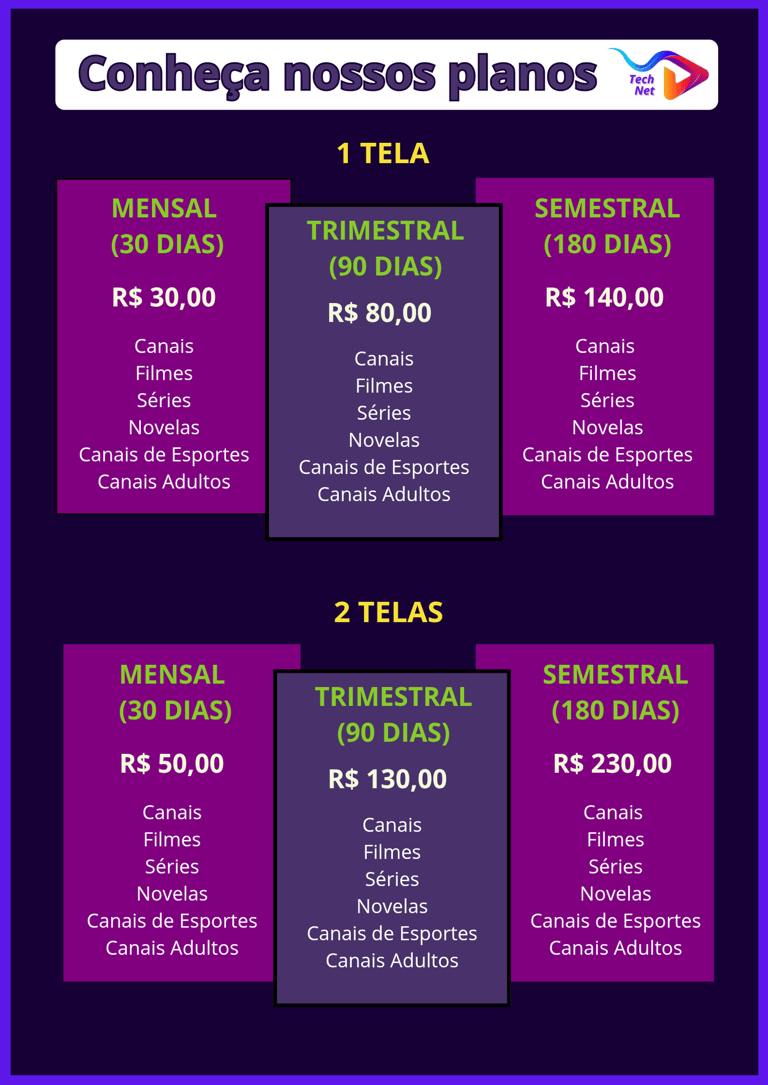 Dá acesso a milhares de canais, incluindo canais pagos, esportivos, adultos e internacionais.